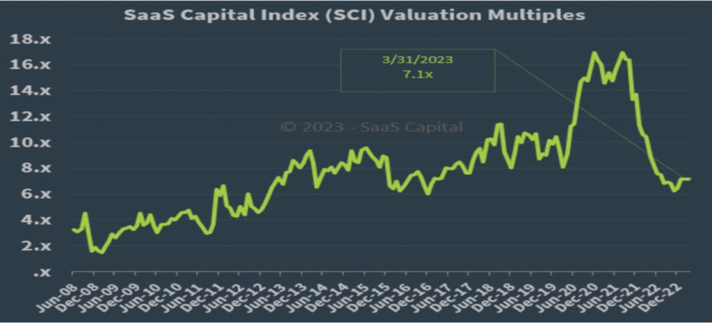 Figure 4: Average Enterprise Value – to Annual Recurring Revenue Multiples for SaaS Companies (Source: SaaS Capital)